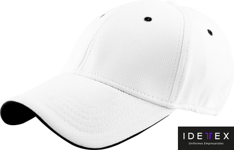 Gorra cerrada Spandex, 6 ojillos bordados y frente rígido. Banda para sudor en poliéster.